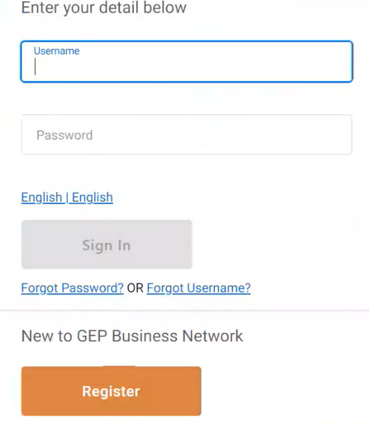 1. Navigate to the Business Network Login page using the URL - http://businessnetwork.gep.com.