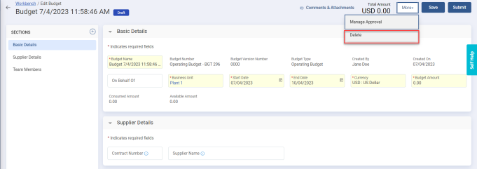 If the budget was incorrectly created or it’s no longer needed, you can delete it. You can delete the budget only when it’s in Draft state.