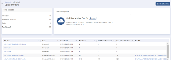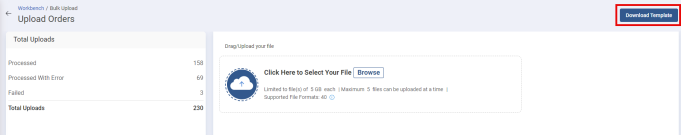 To download the template, click Download Template on the Upload Orders page of Order Workbench.