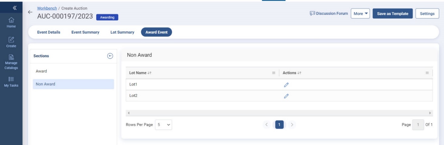 1. To non-award an auction, click the Non-Award on the left pane.