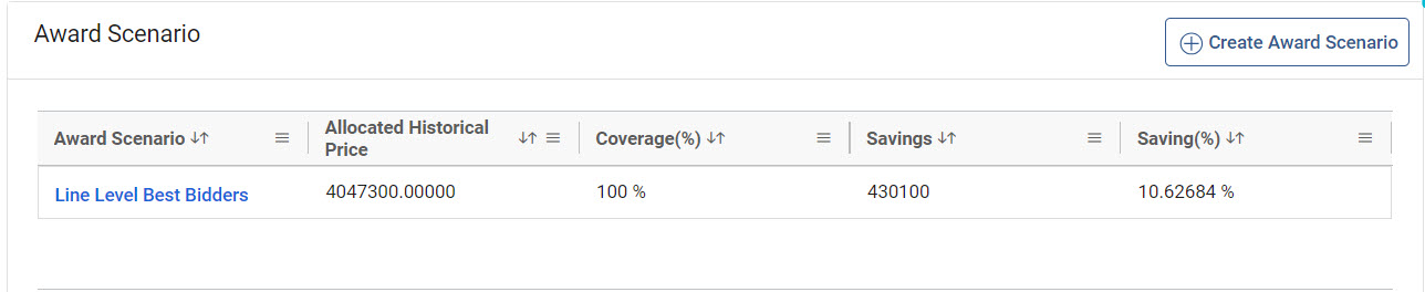 You can analyze the supplier responses to easily identify the suppliers who have bided the lowest price against every line item. Along with line-item view, you will also be able to see the summary of default allocation per supplier considering lowest bidding suppliers were allocated those lines.