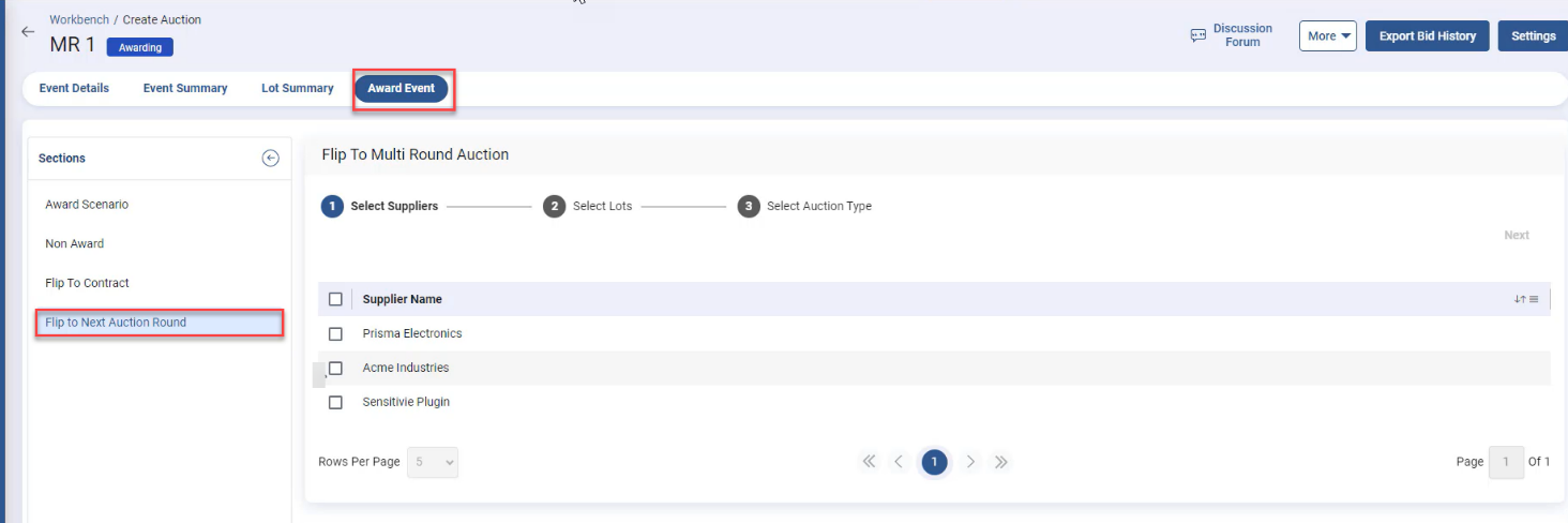 If you want to revise the Auction specifications or add a new supplier, flip it to the next round.