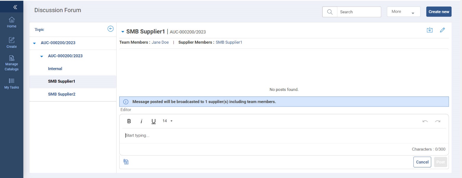 1. On the left pane, the different discussions created by the buyer for this event are displayed.