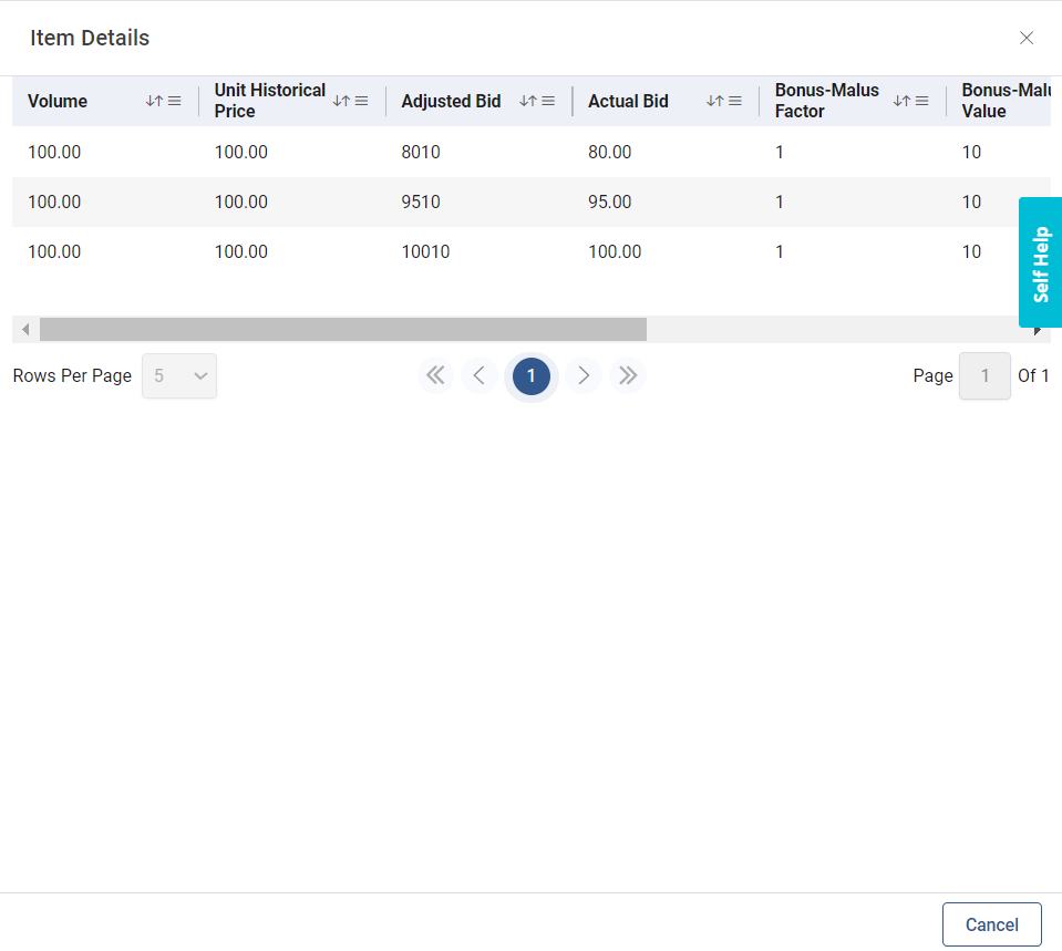 • Bid Table – Displays information on best bids placed by suppliers or by items.