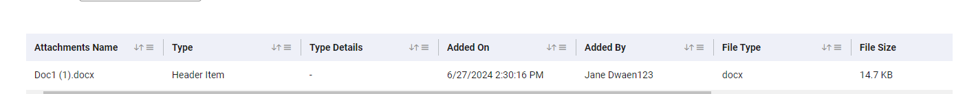 For Attachment Type column, you can now add a new custom column as an attachment type allows you to add attachment to each row which act as a reference document specifically for that line-item.