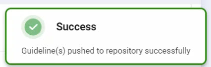 A popup is displayed as Guideline(s) pushed to repository successfully.