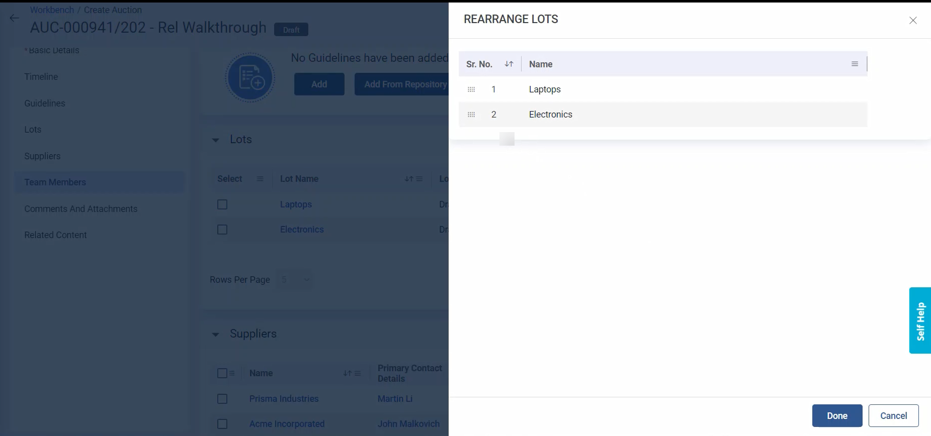 Allow you to configure rules for supplier bidding such as bidding at lot level, above or below the starting price, and matching bid setting, which allows whether multiple suppliers can place the matching bid or not. |