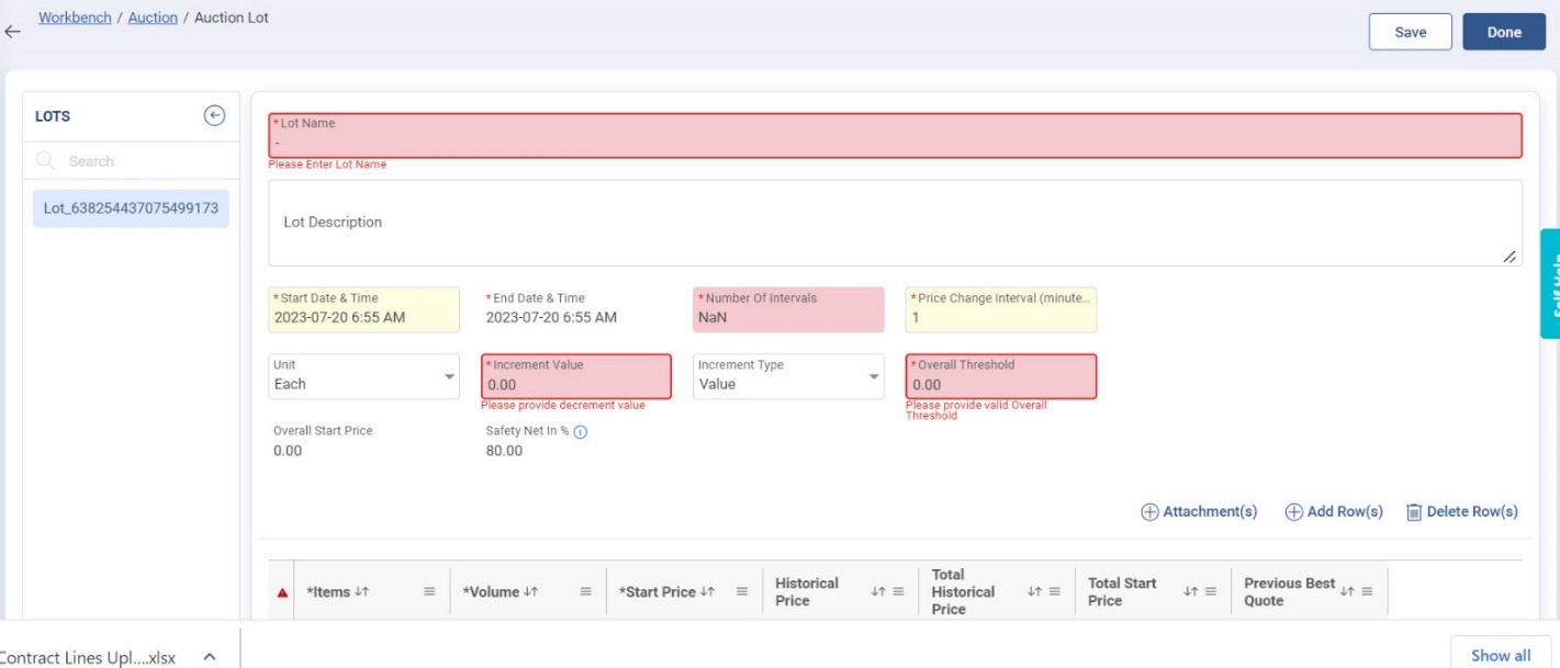 Overall Start Price: It displays the total starting price applicable to Suppliers at the lot level.