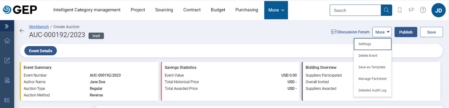 If your Administrator has enabled the approval domain setting and defined the approval process, you can send the Auction document for approval. Only after publishing the Auction, you can send the same for approval. It should be in the Draft – Approval Required state.