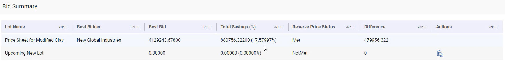 On the Event Summary tab, scroll down to the Bid Summary table.